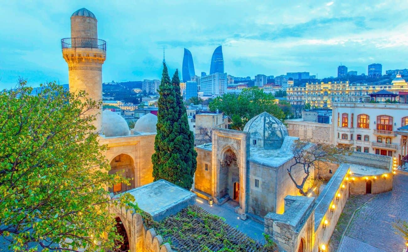 Azerbaijan, located at the crossroads of Eastern Europe and Western Asia in the South Caucasus, borders the Caspian Sea and has Baku as its capital—a city blending modern and ancient architecture.